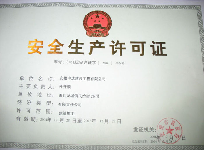 當前位置:首頁 > 證書展示 >安全生產許可證